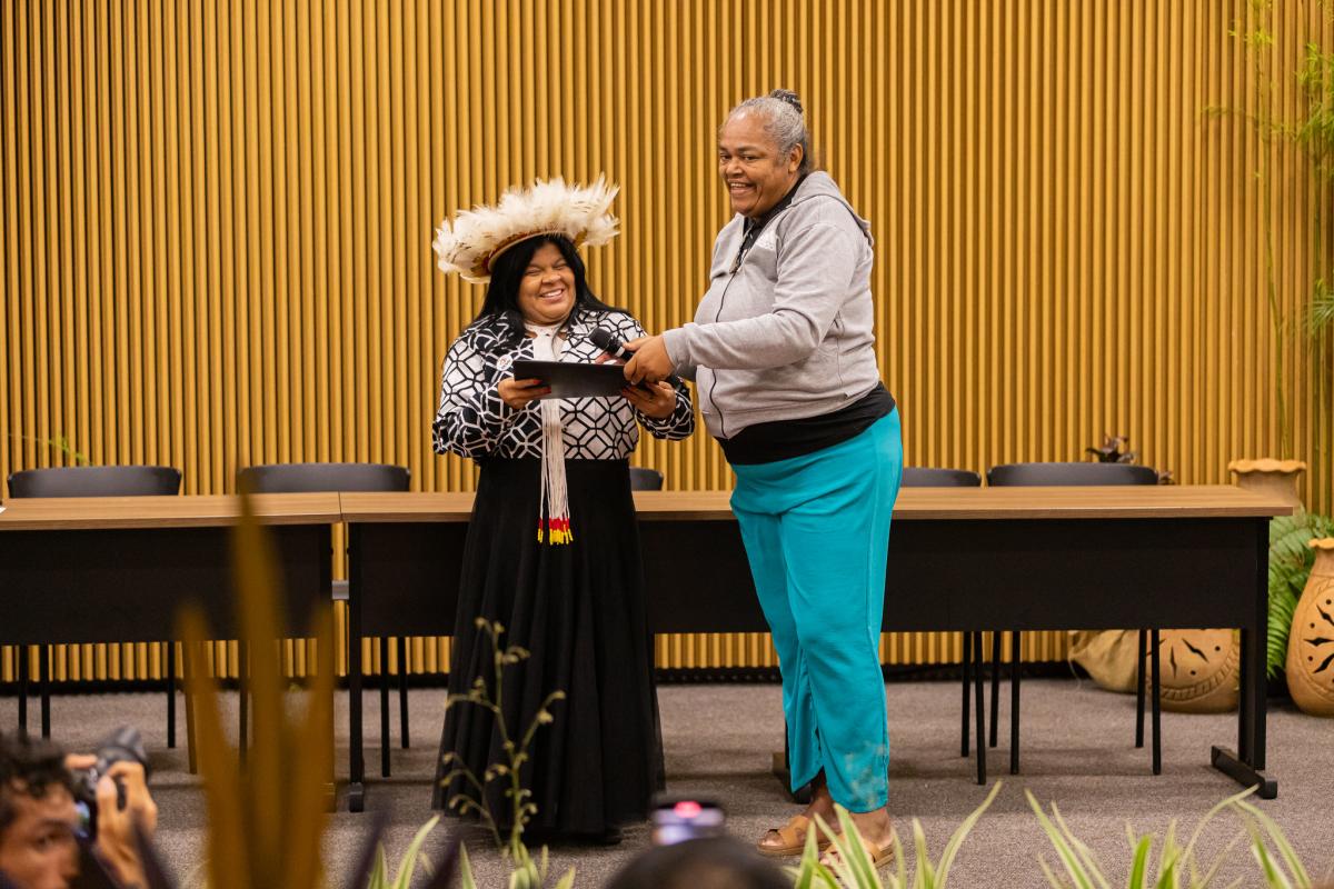 A ministra dos Povos Indígenas, Sonia Guajajara, recebeu o documento em nome do governo, ao lado de representantes do Ministério Público Federal (MPF), da Defensoria Pública da União (DPU) e dos ministérios da Justiça e Segurança Pública (MJSP) e dos Direitos Humanos e Cidadania (MDHC).